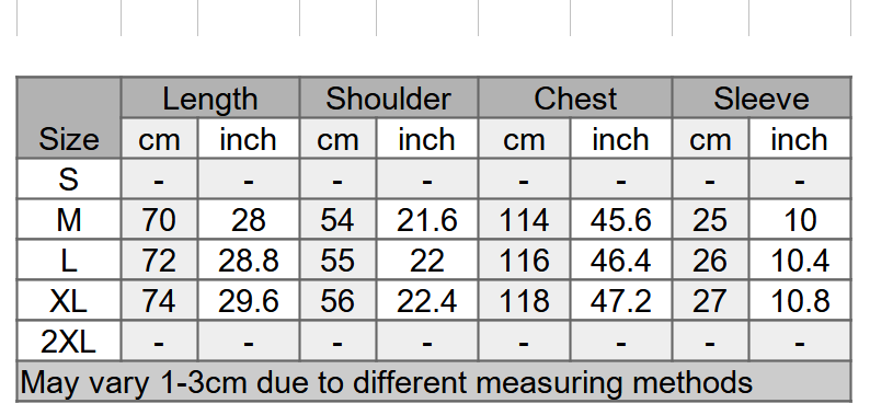 Size please refer to size chart 100% cotton
