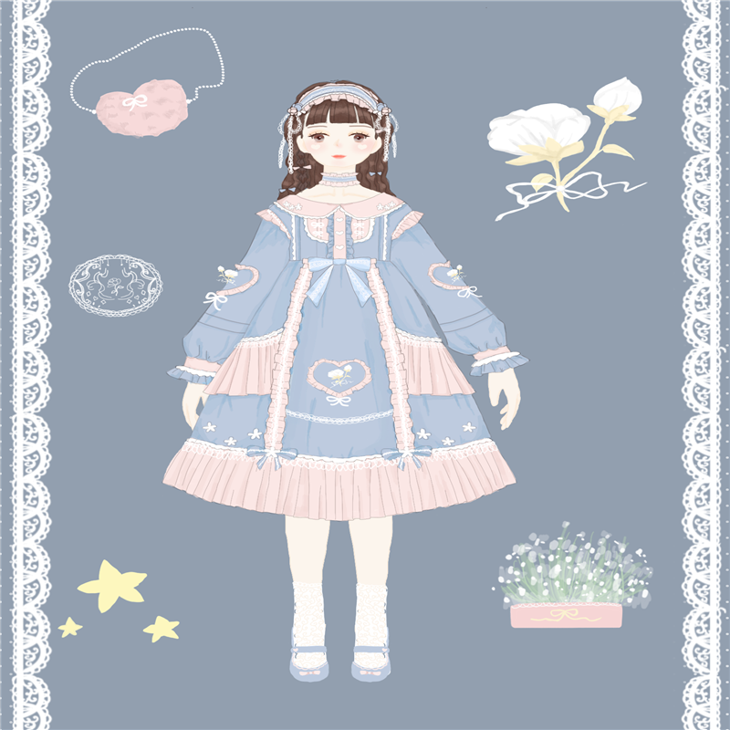 Harajuku Sweet Heart and Flowers Lolita Doll Dress