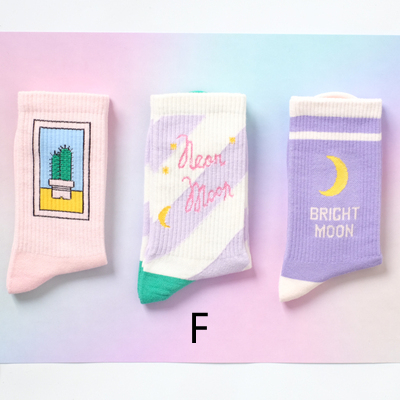 3X FREE SHIP Pastel Moon and Strawberry Milkshake Girl Socks