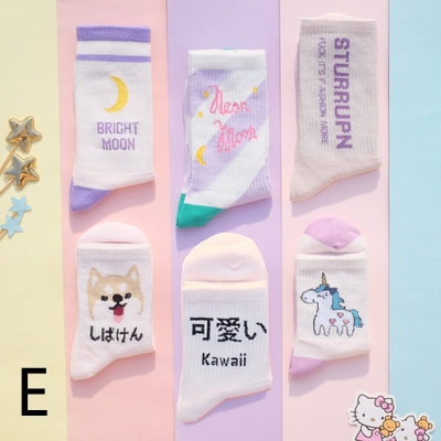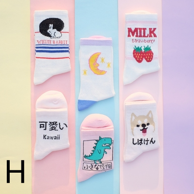 6X FREE SHIP Pastel Moon and Strawberry Milkshake Girl Socks