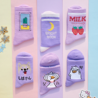 6X FREE SHIP Pastel Moon and Strawberry Milkshake Girl Socks